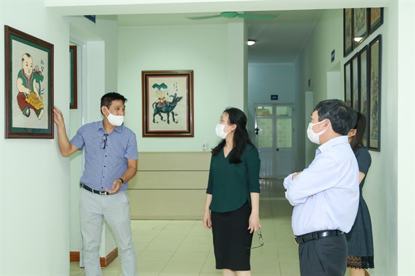 Thứ trưởng Đoàn Văn Việt tham quan không gian trưng bày tranh dân gian tại NXB Văn hóa dân tộc