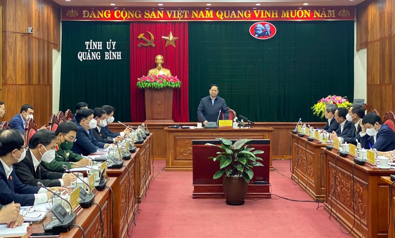 Trên cơ sở đó, Thủ tướng Phạm Minh Chính đề nghị tỉnh Quảng Bình tiếp tục cụ thế hóa đường lối của Nghị quyết Đại hội Đảng toàn quốc lần thứ 13, kế hoạch phát triển kinh tế- xã hội 5 năm (2021-2025), Nghị quyết Đại hội Đảng bộ tỉnh; dựa vào lời thế, thế mạnh của địa phương để phát huy, vươn lên với tình thần mãnh mẽ, quyết tâm hơn nhưng phải tập trung có trọng tâm, trọng điểm.
