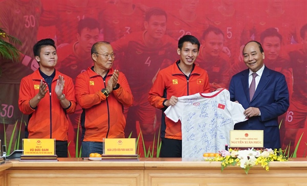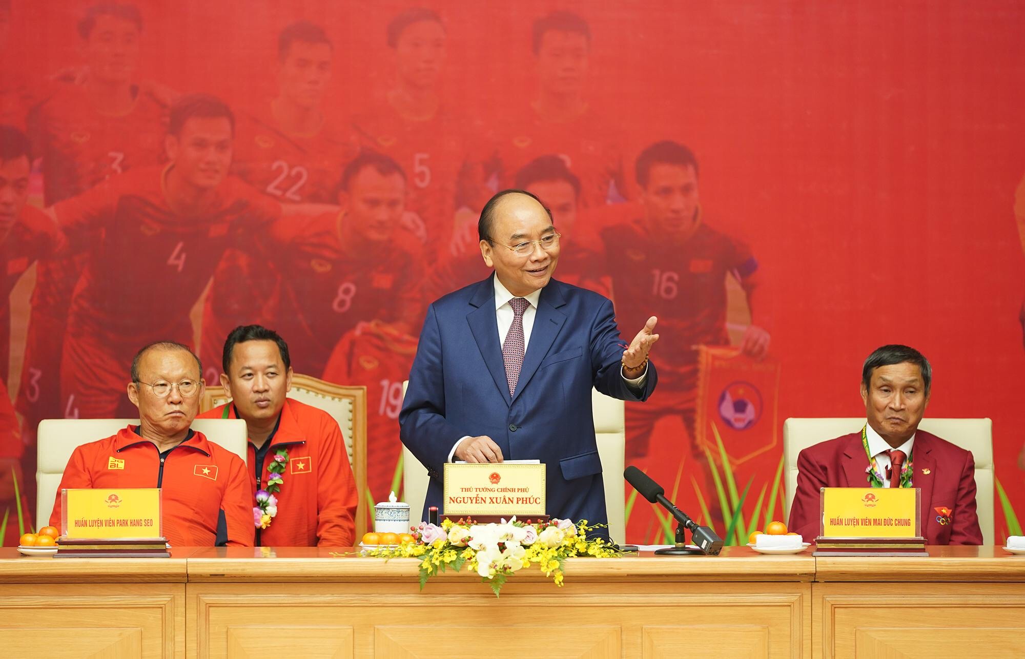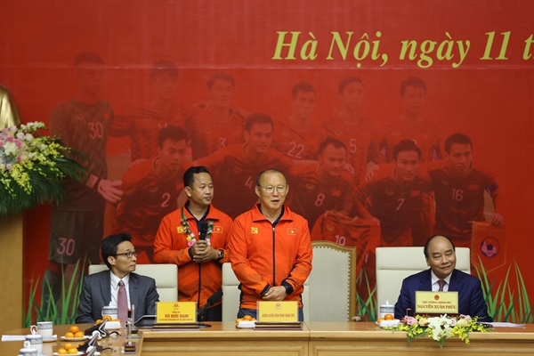 Các HLV Park Hang-seo và Mai Đức Chung cám ơn tình cảm của Thủ tướng Nguyễn Xuân Phúc dành cho đội tuyển và gửi cám ơn đến người hâm mộ cả nước, Bộ Văn hóa, Thể thao và Du Lịch và Liên đoàn bóng đá Việt Nam đã đồng hành, cổ vũ nhiệt tình