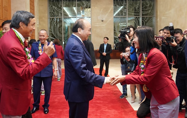 Tại SEA Games lần này, đoàn Việt Nam cũng đạt được 98 huy chương vàng, hàng trăm huy cương bạc, đồng, đứng thứ 2 toàn đoàn trên bảng tổng sắp dù tham gia thi đấu ở không nhiều bộ môn. “Kết quả này vượt mức kế hoạch đề ra. Thành tích này sẽ được tổng kết sau trận đấu, để các vận động viên sớm được khen thưởng theo các hình thức trong tuần tới, khi toàn đoàn trở về đông đủ từ Phillipines”, Thủ tướng nói và cho hay việc tổng kết, khen thưởng sẽ do Bộ trưởng Văn hóa, Thể thao và Du lịch chuẩn bị, lãnh đạo Chính phủ sẽ đến tham dự, chứng kiến.