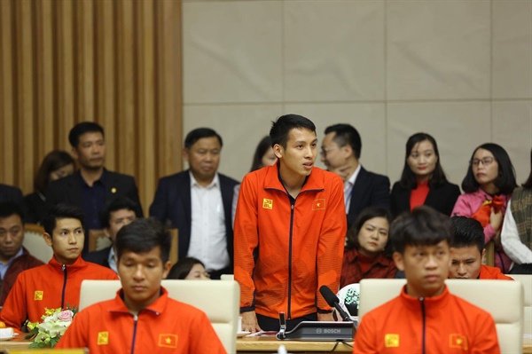 Thay mặt tuyển bóng đá nam Việt Nam, cầu thủ Hùng Dũng gửi lời cảm ơn tới Thủ tướng cùng toàn thể người hâm mộ