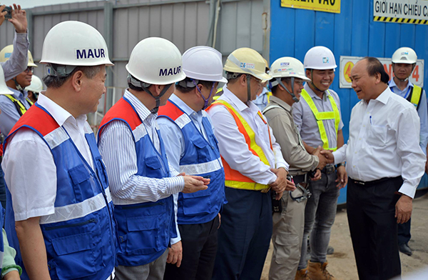 Trong chuyến thị sát, Thủ tướng Nguyễn Xuân Phúc đã đến một số điểm thuộc công trình đang thi công, trong đó có đoạn ngầm ga Bến Thành, ga Nhà hát TP. Tại các công trường, Thủ tướng Nguyễn Xuân Phúc bày tỏ vui mừng và đánh giá cao sự nỗ lực và quyết tâm cao từ trung ương đến địa phương trong tổ chức triển khai việc thực hiện dự án.