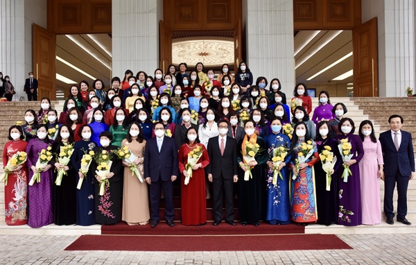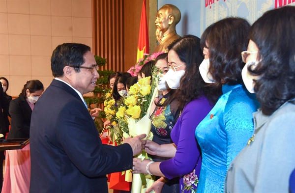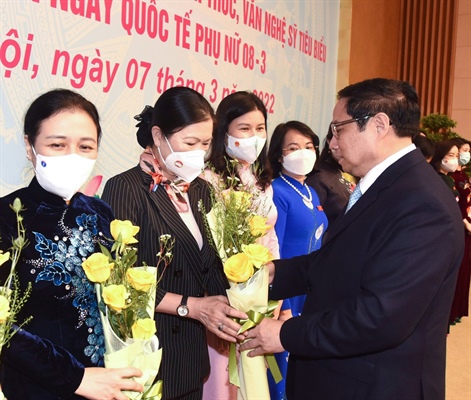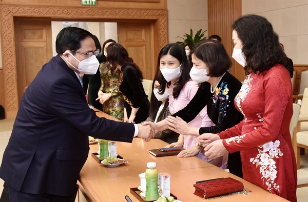 Mặt khác, Thủ tướng bày tỏ, chúng ta suy nghĩ và hành động như thế nào để giúp đỡ nhiều chị em vượt qua những rào cản về văn hóa, định kiến về giới, có điều kiện, cơ hội vươn lên xây dựng cuộc sống ấm no, bình đẳng, hạnh phúc. Trước mắt, cùng tập trung thực hiện "Thích ứng an toàn, linh hoạt, kiểm soát hiệu quả dịch bệnh COVID-19" tạo nền tảng quan trọng phục hồi nhanh, phát triển kinh tế - xã hội bền vững; điều này đòi hỏi sự quyết tâm cao của cả hệ thống chính trị, phát huy sức mạnh đại đoàn kết toàn dân tộc, trong đó có vai trò quan trọng, không thể tách rời của chị em phụ nữ, nhất là đội ngũ cán bộ nữ lãnh đạo, quản lý các cấp và nữ trí thức, văn nghệ sỹ.