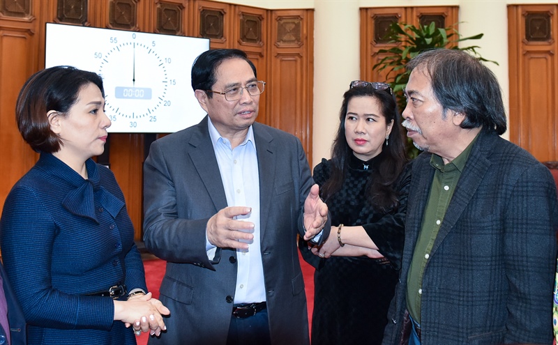 Thủ Tướng trao đổi với đại diện các hội Văn học nghệ thuật tại cuộc làm việc