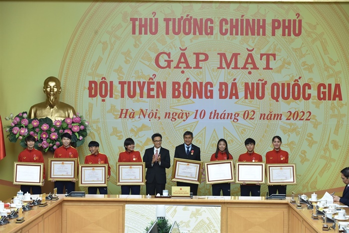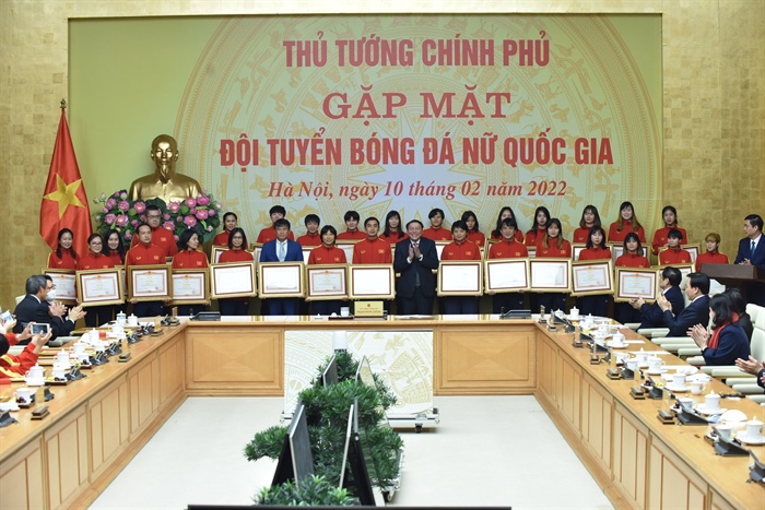 Thủ tướng cũng đánh gía, kết quả này phản ánh bước tiến vững chắc của bóng đá nữ Việt Nam. Hiện nay, Việt Nam đang là đội vô địch SEA Games nhiều nhất ở khu vực. Để có được những “trái ngọt” đó, Thủ tướng ghi nhận và đánh giá cao sự quan tâm của Liên đoàn Bóng đá Việt Nam, của Ban huấn luyện; của Tổng cục Thể dục thể thao, Bộ VHTTDL, của các cán bộ, bác sỹ, y tá, của gia đình, người thân, các câu lạc bộ nơi cầu thủ thi đấu, của sự hỗ trợ của cộng đồng doanh nghiệp và sự cổ vũ, cảm thông của người hâm mộ. Thủ tướng cũng cho biết, ông chia sẻ những điều này để muốn nói lên thông điệp rằng chúng ta cần quan tâm hơn nữa đến bóng đá nữ. Thủ tướng giao Bộ VHTTDL, Bộ Tài chính, Liên đoàn bóng đá Việt Nam, các doanh nghiệp tiếp tục quan tâm, đầu tư, tạo điều kiện để bóng đá nữ phát triển.