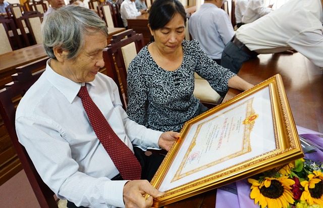 Thân nhân Mẹ Việt Nam Anh hùng Phạm Thị Hiền (xã Thủy Thanh, thị xã Hương Thủy) xúc động khi nhận chứng nhận Chủ tịch nước tặng