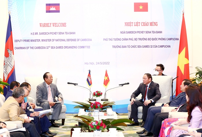 Bộ trưởng Bộ VHTTDL, Trưởng BTC SEA Games 31 Nguyễn Văn Hùng đã có cuộc gặp và làm việc với  Ngài Samdech Pichey Sena Tea Banh, Phó Thủ tướng Chính phủ, Bộ trưởng Bộ Quốc phòng, Trưởng Ban Tổ chức SEA Games 32 của Campuchia