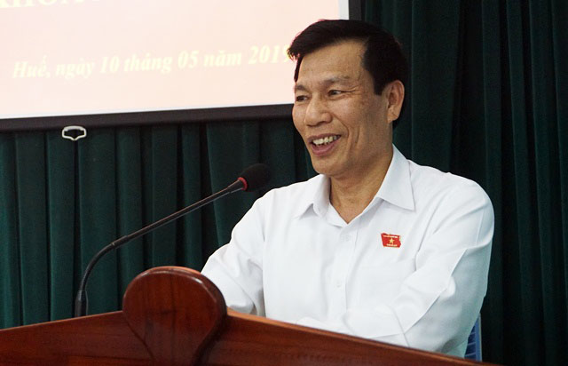 Bộ trưởng Nguyễn Ngọc Thiện phát biểu tại Hội nghị tiếp xúc cử tri sáng ngày 10.5 ở Huế