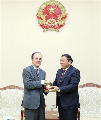 VHO- Sáng 26.4, Bộ trưởng Bộ VHTTDL Nguyễn Văn Hùng đã có buổi tiếp xã giao Đại sứ Hy Lạp tại Việt Nam – ông Georgios Stilianopoulos. Bày tỏ vui mừng vì chuyến thăm và làm việc của Đại sứ Hy Lạp tới Bộ VHTTDL, Bộ trưởng Nguyễn Văn Hùng cảm ơn ngài Đại sứ đã có cuộc hội kiến trao đổi về sự hợp tác giữa hai nước nói chung cũng như sự hợp tác trong các lĩnh vực Văn hoá, Thể thao, Du lịch giữa hai nước nói riêng.