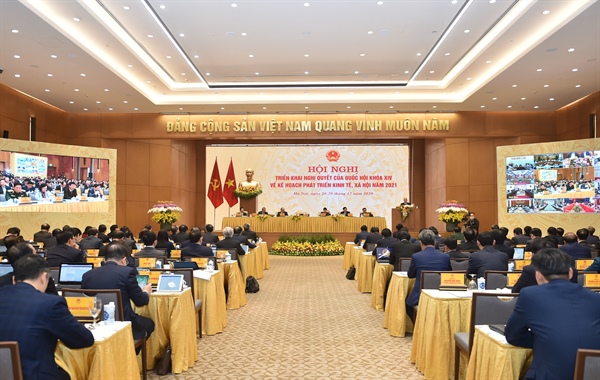 Phát biểu khai mạc Hội nghị, Thủ tướng Nguyễn Xuân Phúc khẳng định, đây là thời điểm củng cố niềm tin, nền kinh tế, đất nước ta đang tiến nhanh về phía trước. Riêng năm 2020, dưới tác động của dịch Covid-19, nhiều nước rơi vào suy thoái, Việt Nam là quốc gia hiếm hoi duy trì tăng trưởng dương, dịch bệnh được kiểm soát, bảo đảm an sinh xã hội. Đến thời điểm này, chúng ta đã đạt được mục tiêu kép trong phòng chống Covid-19 và duy trì tăng trưởng kinh tế.