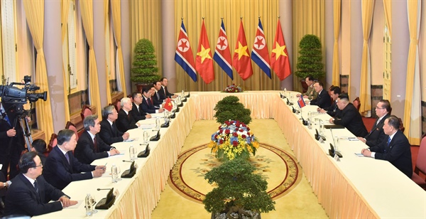 Ngay sau Lễ đón, Tổng Bí thư, Chủ tịch nước Nguyễn Phú Trọng và Chủ tịch Triều Tiên Kim Jong Un đã tiến hành hội đàm, tại Phủ Chủ tịch.