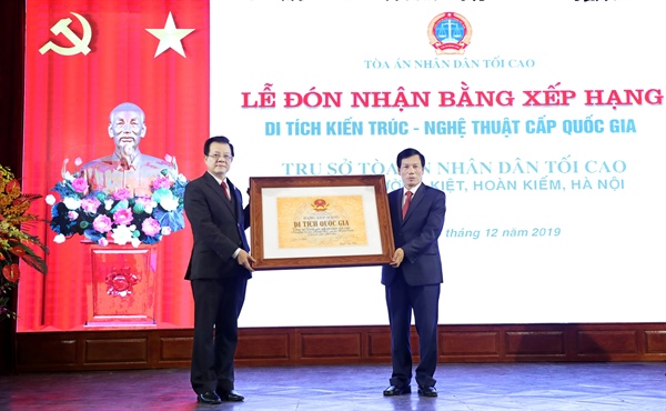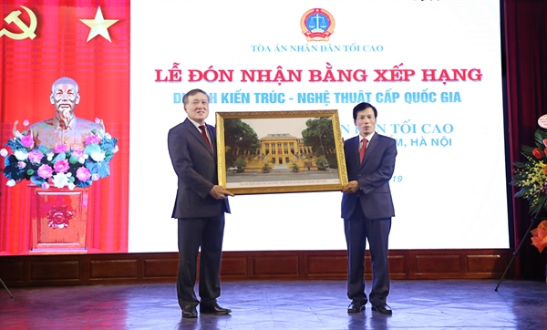 Trao Bằng xếp hạng di tích Kiến trúc - Nghệ thuật cấp Quốc gia cho Trụ sở Tòa án nhân dân tối cao