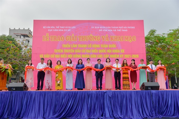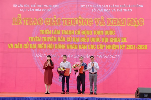 Ông Lương Đức Thắng cho biết, nhằm đẩy mạnh công tác tuyên truyền bầu cử đại biểu Quốc hội khóa XV và đại biểu HĐND các cấp nhiệm kỳ 2021-2026, Cục Văn hóa cơ sở phối hợp với Sở VHTT Hải Phòng tổ chức khai mạc triển lãm tranh cổ động tấm lớn và trao giải thưởng cuộc thi sáng tác tranh cổ động tại khu vực Nhà Triển lãm TP. Hải Phòng.