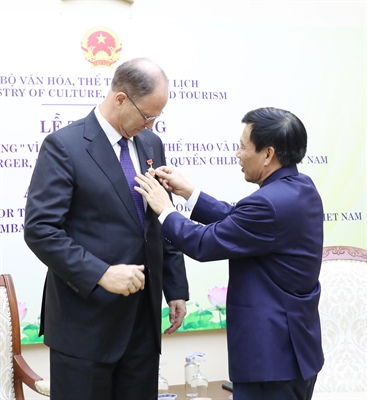 Trao tặng Kỷ niệm chương “Vì sự nghiệp Văn hóa, Thể thao và Du lịch” cho Đại sứ Đặc mệnh toàn quyền CHLB Đức tại Việt Nam
