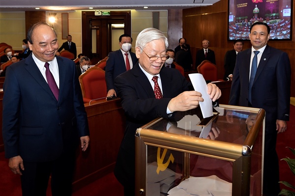 Nhấn mạnh, việc chuẩn bị nhân sự Bộ Chính trị, Ban Bí thư khóa XIII là công việc tiếp nối, kế thừa của công tác quy hoạch cán bộ, rất hệ trọng và liên quan đến thành công của Đại hội XIII của Đảng và sự phát triển của đất nước trong giai đoạn mới, Tổng Bí thư, Chủ tịch nước Nguyễn Phú Trọng đề nghị từng đồng chí Trung ương nêu cao tinh thần trách nhiệm, tập trung nghiên cứu kỹ Tờ trình của Bộ Chính trị và các tài liệu nhân sự có liên quan, suy nghĩ cân nhắc thận trọng, đặt lợi ích của Đảng, của quốc gia - dân tộc lên trên hết, trước hết, thảo luận thật kỹ, cho ý kiến một cách thẳng thắn, trách nhiệm, tạo sự đoàn kết và thống nhất cao trong việc bỏ phiếu quyết định giới thiệu nhân sự tham gia Bộ Chính trị, Ban Bí thư khóa XIII.