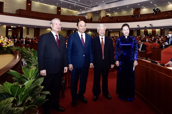 Tổng Bí thư, Chủ tịch nước Nguyễn Phú Trọng; Thủ tướng Chính phủ Nguyễn Xuân Phúc; Chủ tịch QH Nguyễn Thị Kim Ngân; Thường trực Ban Bí thư Trần Quốc Vượng dự Hội nghị