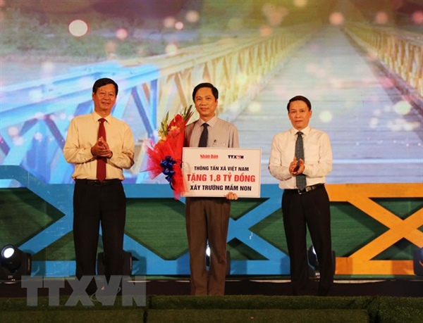 Tại chương trình, Tổng Giám đốc Thông tấn xã Việt Nam Nguyễn Đức Lợi đã trao tặng 1,8 tỷ đồng để xây dựng 3 phòng học cho trường Mầm non tại xã Triệu Tài, huyện Triệu Phong, tỉnh Quảng Trị. Báo Nhân dân và Tập đoàn Điện lực Việt Nam trao 1 tỷ đồng tặng các gia đình chính sách có hoàn cảnh khó khăn trên địa bàn tỉnh Quảng Trị.