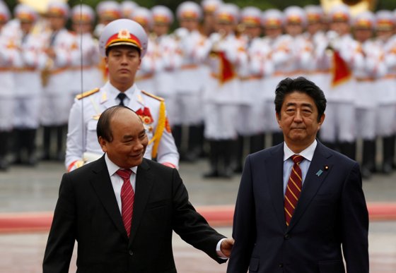 Ngày 16.1.2017, Thủ tướng Nguyễn Xuân Phúc đã chủ trì Lễ đón chính thức Thủ tướng Nhật Bản Shinzo Abe thăm chính thức Việt Nam tại Phủ Chủ tịch. Ảnh: Reuters
