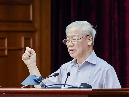 "Tham nhũng thường diễn ra trong nội bộ, do người có chức, có quyền thực hiện. Phòng, chống tham nhũng là cuộc đấu tranh ngay trong chính bản thân mỗi con người, trong mỗi cơ quan, tổ chức, đơn vị, địa phương mình; liên quan đến lợi ích, chức vụ, danh vọng, uy tín của tổ chức, cá nhân. Vì vậy, phải có thái độ thật kiên quyết, không khoan nhượng và hành động thật quyết liệt, cụ thể, hiệu quả", Tổng Bí thư nhấn mạnh.
