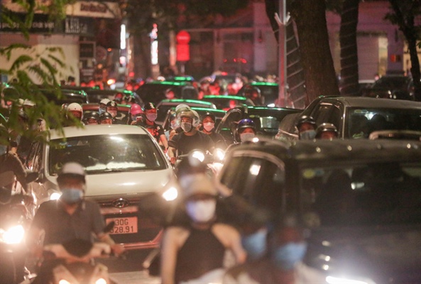 Rất đông người dân ở Hà Nội đổ ra đường đêm Trung thu bất chấp quy định phòng chống dịch Covid-19