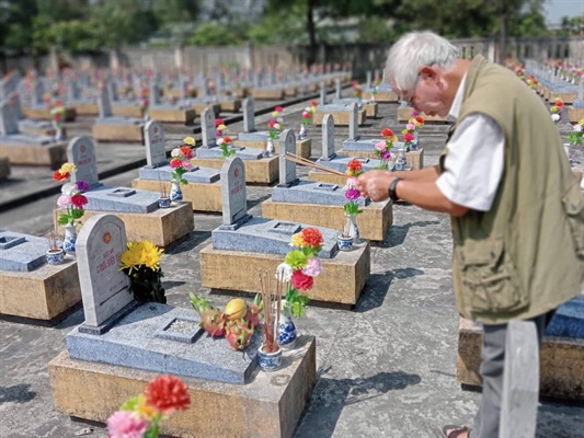 Lụi cụi hương hoa, thoảng những khi nhìn những đồng đội già ở tuổi 70, 80, cùng mình cẩn trọng thắp từng nén hương trên các phần mộ đồng đội, tôi như quên hết những mỏi mệt đường trường khi đồng đội tôi, người hy sinh vẫn nằm đó, đồng đội đang sống vẫn còn đây, tâm nguyện ân nghĩa vun đầy...
