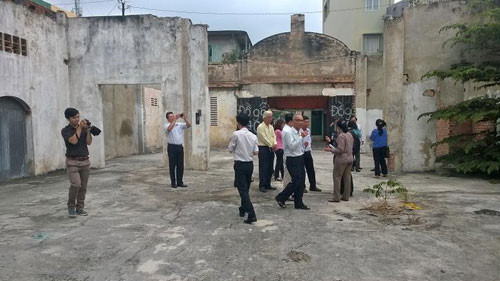 Lãnh đạo ban, ngành các cấp cùng các chuyên gia đầu ngành về khảo cổ, lịch sử đến khảo sát đình Nam Tiến, quận 4, TP.HCM vào tháng 3.2014. Ảnh: P.Đ.M