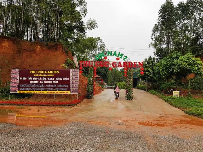 Cổng chào khu sinh thái Thu Cúc Garden, một công trình xâm phạm nghiêm trọng vùng bảo vệ di tích lịch sử Đền Hùng