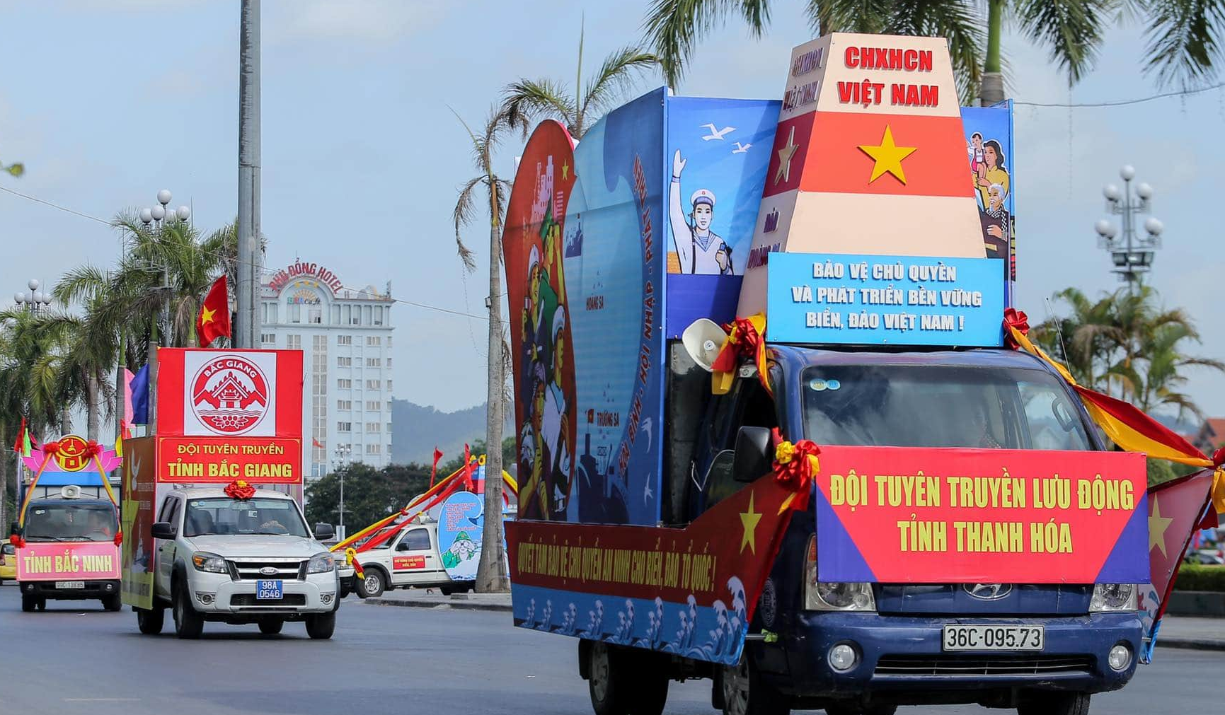 Đoàn xe tuyên truyền cổ động diễu hành các tuyến đường TP. Thanh Hóa tuyên truyền về chủ quyền và phát triền bền vững biển, đảo Việt Nam