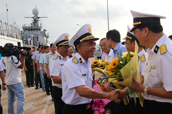 Chuẩn đô đốc Lương Việt Hùng, Phó Tư lệnh Hải quân nhận bó hoa tươi thắm của đất liền gửi