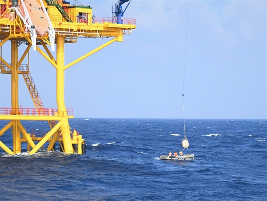 Hàng quà Tết lên nhà giàn DK1/12 bằng dây kéo