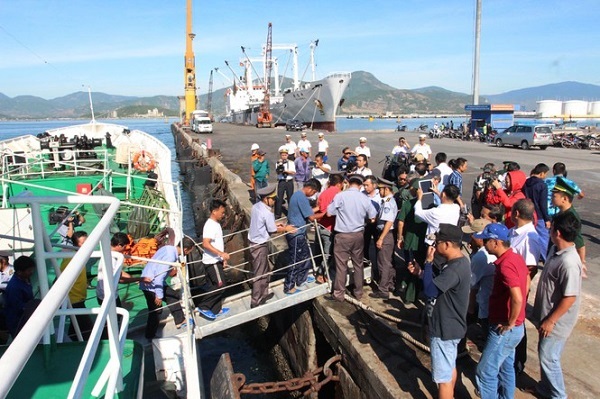 Các ngư dân bị nạn được tàu cứu hộ đưa vào cảng Ba Ngòi an toàn