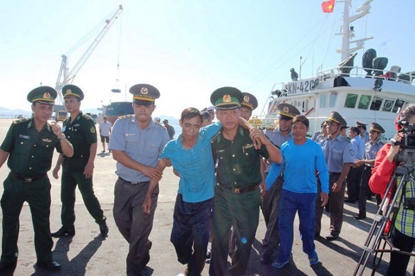 Lực lượng cứu hộ đưa các ngư dân bị nạn ở Trường Sa vào bờ