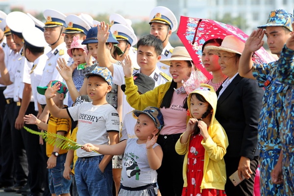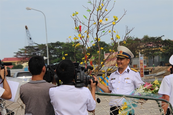 Chiều 29.12 vừa qua, Quân cảng Vùng 2 Hải quân tràn ngập sắc xuân. Hàng trăm cán bộ, chiến sĩ của Tiểu đoàn DK1 chuyển quà Xuân của nhân dân cả nước gửi tặng xuống tàu. Hàng chục thân nhân gia đình của cán bộ, chiến sĩ DK tiễn chân người cha, chồng… ra nhà giàn canh biển. Phía đầu cầu cảng, tốp chiến sĩ sửa lại cành đào để chuyển xuống tàu, phía cuối cảng bên kia những người lính trẻ phấn khởi chia tay trước khi tàu rời bến. Dưới khoang tàu các thủy thủ nhễ nhại mồ hôi chuyển từng thùng hàng, quà xếp gọn, chằng, che cẩn thận.