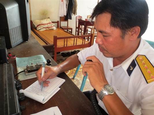 Đại úy Hồ Thế Công trong giờ làm việc với đất liền