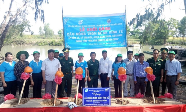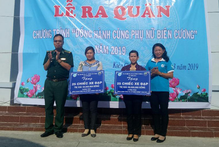 Lễ ra quân thực hiện chương trình “Đồng hành cùng phụ nữ biên cương” năm 2019, thực hiện các hoạt động như: Xây dựng 01 cây cầu giao thông nông thôn Kênh Vĩnh Tế; xây dựng 12 căn nhà “Mái ấm tình thương”; hỗ trợ sinh kế cho 5 hộ gia đình; tặng 100 bồn chứa nước 1.000 lít; 50 chiếc xe đạp cho hội viên, phụ nữ, học sinh nghèo, gia đình chiến sĩ khó khăn thuộc 02 huyện Giang Thành và An Biên (xã Phú Lợi, Vĩnh Điều huyện Giang Thành, xã Nam Yên, huyện An Biên) và ra mắt Công trình trồng hoa dài 2,5km (cắm 01 bảng tuyến đường xanh - sạch, trồng hoa Hoàng Yến tại xã Vĩnh Điều, Giang Thành) với tổng kinh phí thực hiện các hoạt động trên 1 tỷ đồng.