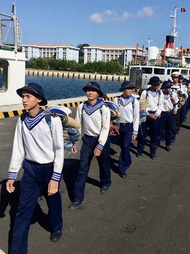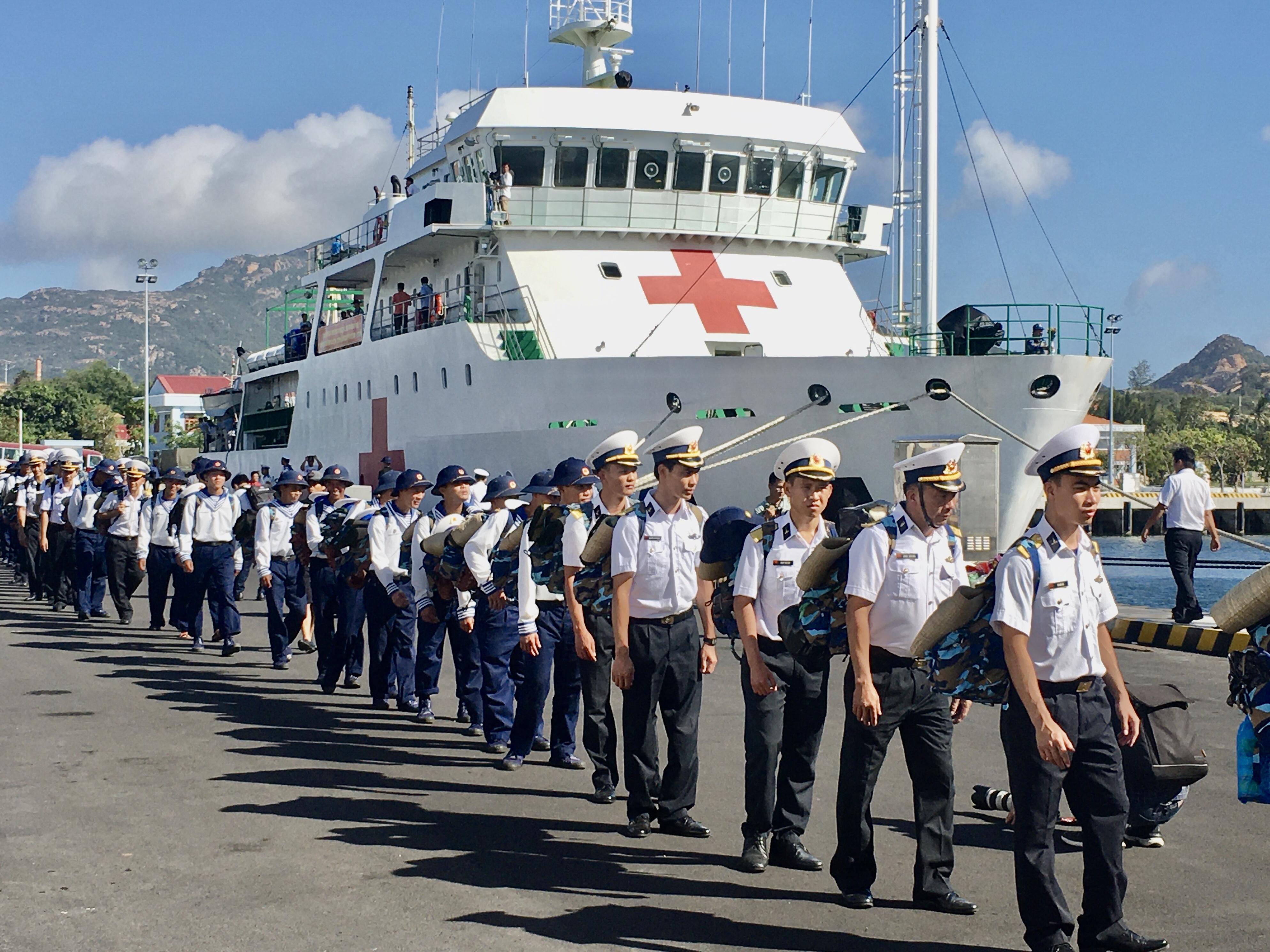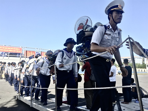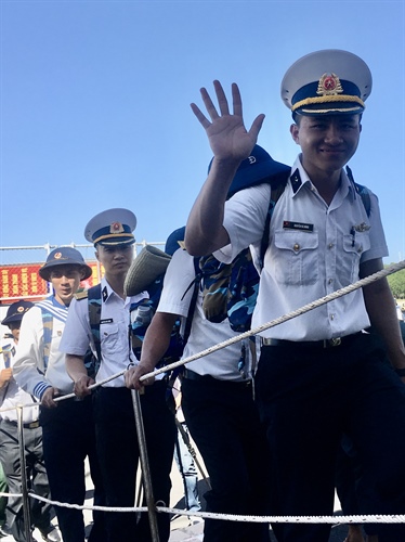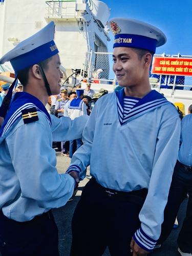 Chiến sĩ về đất liền chúc đồng đội ở lại công tác tốt