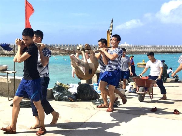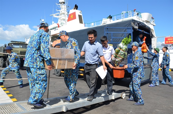 Thực phẩm, hoa quả được chuyển lên đảo để chiến sĩ chuẩn bị đón Tết