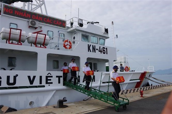 Lực lượng kiểm ngư đưa thùng phiếu của 20 khu vực bỏ phiếu sớm của huyện Trường Sa vào ngày 16.5 vừa qua vào bàn giao cho Ủy ban bầu cử huyện Trường Sa
