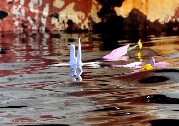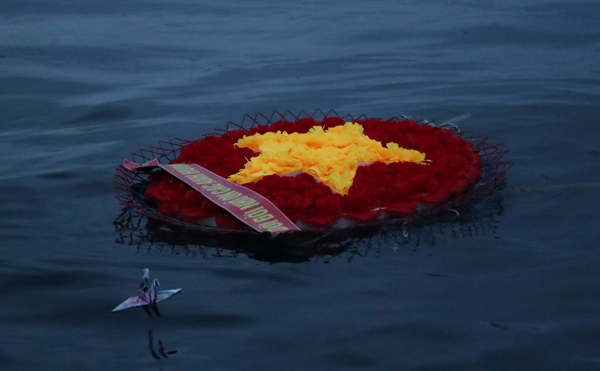 Từng con hạc giấy, từng cánh hoa vàng đã được thả xuống giữa lòng biển khơi - nơi các anh đã kiên cường chiến đấu và đã hy sinh như một lời tri ân gửi đến các anh đang yên nghỉ trong lòng đất mẹ.