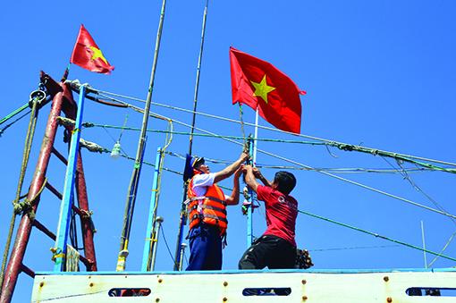 Những lá cờ Tổ quốc cứ thế tung bay giữa trập trùng sóng gió, màu cờ đỏ với ngôi sao vàng thân thương đã thể hiện sức mạnh, niềm tin và khát vọng của muôn triệu người dân Việt. Sự hiện diện của ngư dân trên biển không chỉ đóng vai trò quan trọng cho phát triển kinh tế biển, mà còn khẳng định chủ quyền biển, đảo của Tổ quốc. Chính ngư dân là lực lượng trực tiếp hỗ trợ cùng các lực lượng chức năng, trong đó có lực lượng Cảnh sát biển đấu tranh trên thực địa để bảo vệ chủ quyền an ninh trên biển.