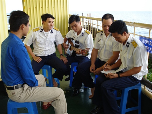 Cây đàn ghi ta luôn là bạn đồng hành của lính nhà giàn lúc nhớ đất liền