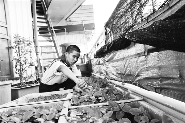 Trồng rau xanh cải thiện đời sống ở nhà giàn DK1