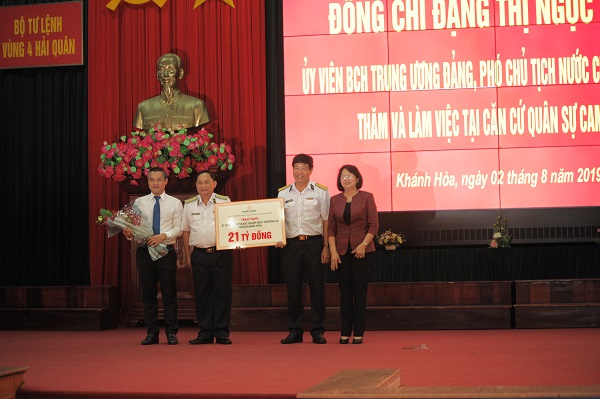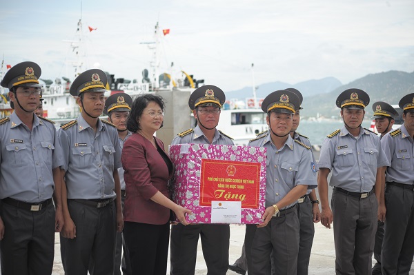 Theo Phó Chủ tịch nước, trong thời gian qua, căn cứ quân sự Cam Ranh đã hoàn thành xuất sắc các nhiệm vụ được giao, nổi bật là tinh thần sẵn sàng chiến đấu, thể hiện được ý chí, bản lĩnh, bảo vệ vững chắc chủ quyền biển, đảo của Việt Nam. Trong đó, đã làm rất tốt nhiệm vụ Hải quân là điểm tựa vững chắc cho ngư dân bám biển; đồng thời, làm tốt công tác cứu hộ, cứu nạn, xây dựng những âu tàu, khu vực trú tránh bão, thực hiện cứu hộ, cứu nạn không chỉ ngư dân Việt Nam mà còn ngư dân các quốc gia khác. “Các đồng chí đã làm rất tốt nhiệm vụ Hải quân điểm tựa vững chắc cho ngư dân bám biển. Chúng tôi cũng rất cảm ơn sự đóng góp, cống hiến không quản ngại hy sinh gian khổ của các đồng chí, đã hoàn thành xuất sắc nhiệm vụ trong thời gian qua. Chúng tôi luôn luôn tin tưởng tuyệt đối vào tinh thần và trách nhiệm của các đồng chí. Tình hình càng phức tạp, chúng tôi biết, nhiệm vụ của các đồng chí càng khó khăn, càng thử thách. Mong các đồng chí luôn bám sát mục tiêu, nhiệm vụ, kỷ luật của Đảng, Nhà nước và Quân đội giao cho”, Phó Chủ tịch nước nhấn mạnh.