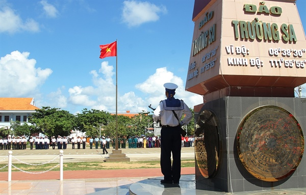 Lễ chào cờ đầu năm mới trên đảo Nam Yết Ảnh: Thúy Hà