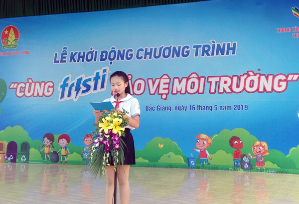 Đại diện học sinh chia sẻ quyết tâm hưởng ứng và hành động "Cùng Fristi bảo vệ môi trường"