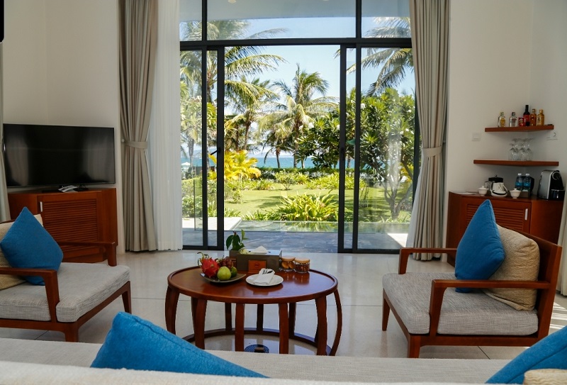 Các phòng nghỉ có không gian tiếp khách rộng rãi được bao quanh bởi khu vườn nhiệt đới, lý tưởng cho những kỳ nghỉ của nhóm bạn.
