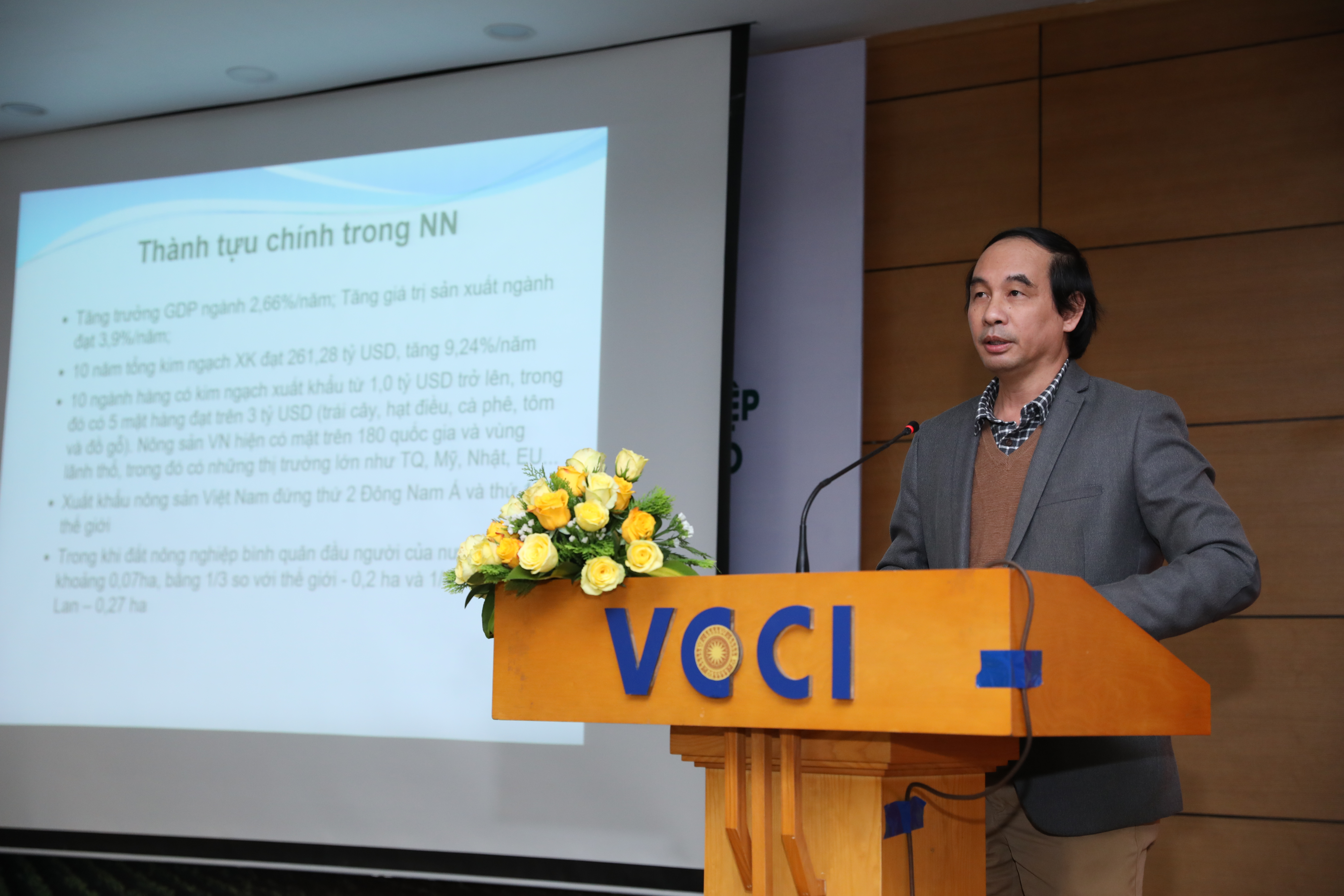 Đây là nội dung phát biểu của PGS. TS. Đào Thế Anh - Phó Giám đốc Viện KHNNVN (VAAS) tại Diễn đàn “Phát triển Hệ sinh thái Hỗ trợ doanh nghiệp nông nghiệp ứng dụng công nghệ cao do Phòng Thương mại và Công nghiệp Việt Nam (VCCI) chủ trì – với sự đồng hành của Ngân hàng TMCP Công thương Việt Nam (VietinBank) và Tổng Công ty Phân bón và Hóa chất Dầu khí - CTCP. Ông Đào Thế Anh cho biết, hiện Việt Nam đang nằm trong Top 15 nhà xuất khẩu nông sản trên thế giới và đứng thứ 2 tại Đông Nam Á. Tuy nhiên, tổng vốn đầu tư của nhà nước cho nông nghiệp trong 10 năm qua đã tăng lên nhưng đầu tư cho công nghệ mới thì dường như đang bị giảm xuống.