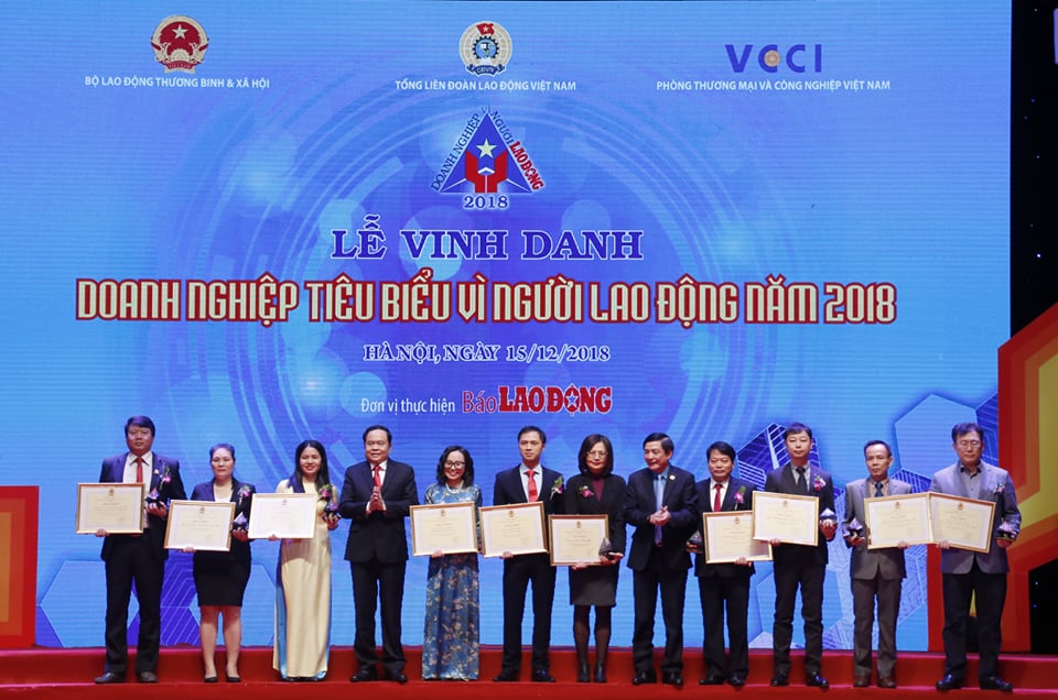 Lễ vinh danh “Doanh nghiệp tiêu biểu vì người lao động” năm 2018 với chủ đề “Doanh nghiệp và phúc lợi cho người lao động” do Báo Lao Động tổ chức đã diễn ra ngày 15.12 tại Hà Nội. Buổi lễ có sự tham dự của ông Trần Thanh Mẫn – Bí thư Trung ương Đảng, Chủ tịch Ủy ban Trung ương Mặt trận Tổ quốc Việt Nam, ông Bùi Văn Cường - Ủy viên Trung ương Đảng, Chủ tịch Tổng LĐLĐVN cùng nhiều lãnh đạo các Ban, Bộ, ngành Trung ương, các Hiệp hội doanh nghiệp, doanh nghiệp…