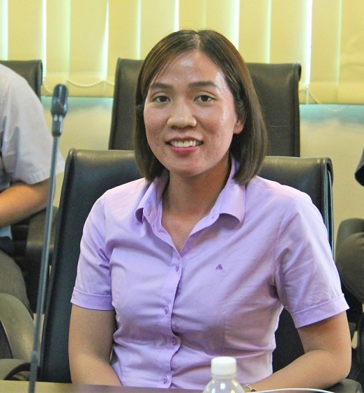 Chị Nguyễn Hoàng Thiên Ca (bên phải) tại buổi làm việc với đoàn công tác của Ban An toàn Tổng công ty Điện lục miền Trung