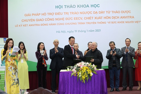 Trong khuôn khổ hội thảo, dưới sự chứng kiến của các đại biểu, hàng trăm người bệnh, các chuyên gia đầu ngành, Công ty Anvy và Hội nội khoa Việt Nam đã thực hiện ký kết hợp tác trong lĩnh vực truyền thông tư vấn sức khỏe cộng đồng. Trong năm 2021, nhãn hàng Anvitra sẽ đồng hành cùng chương trình truyền thông “Vì sức khỏe người Việt” – Hội nội khoa Việt Nam để bảo trợ các hoạt động tư vấn sức khỏe với các bệnh lý đường tiêu hóa nói chung, trào ngược dạ dày thực quản nói riêng.
